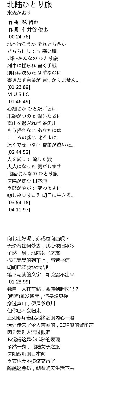 | [00:38.08] | 北陸·おんなの ひとり旅 |