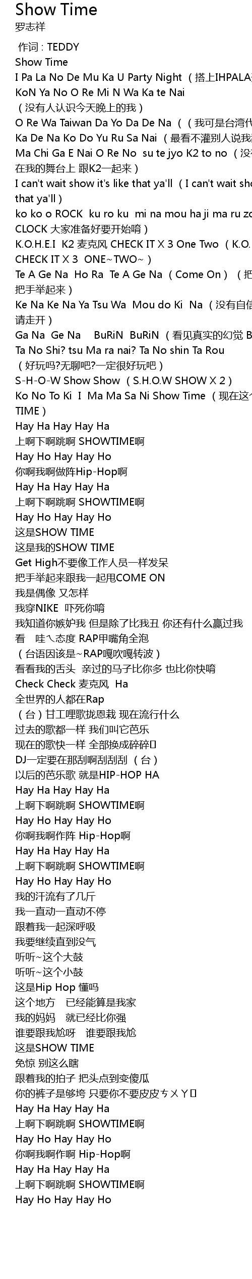 | [01:01.13] | SHOW Show Show S. H. O. W SHOW X 2 |