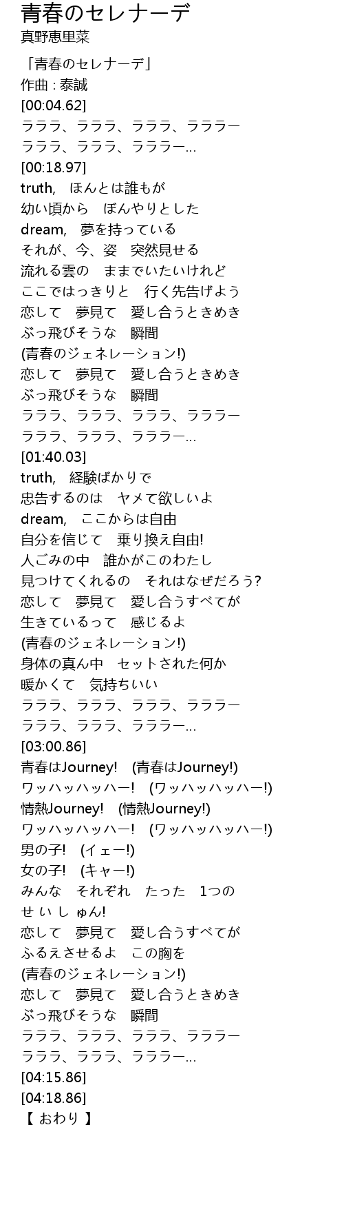 | [03:02.82] | 青春はJourney! (青春はJourney!) |