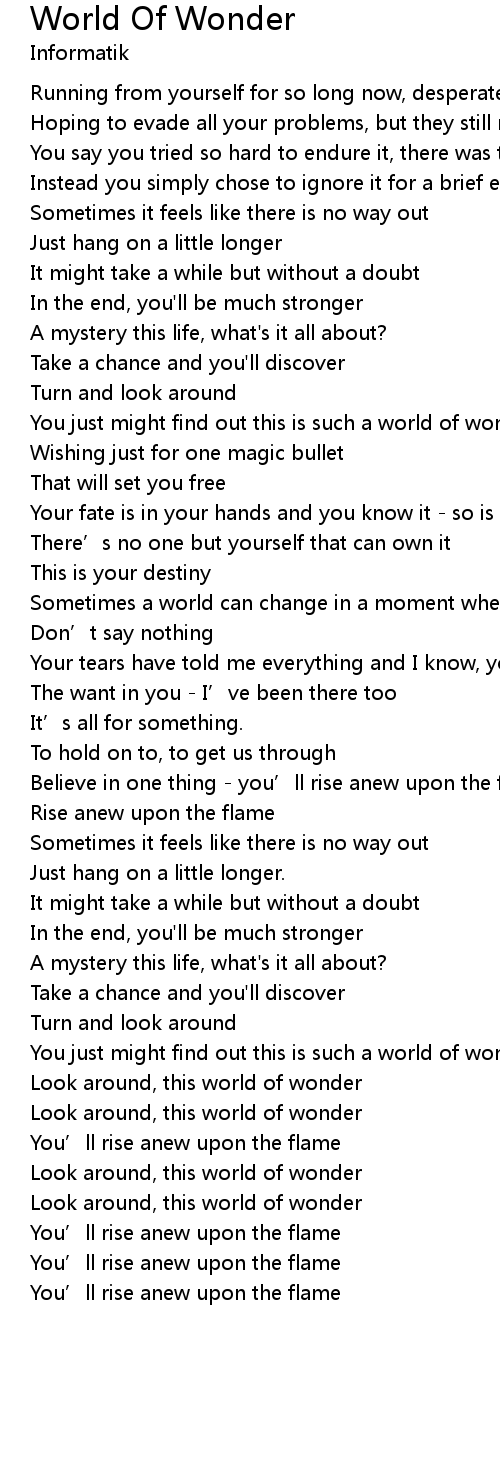 | Believe in one thing you' ll rise anew upon the flame. | |