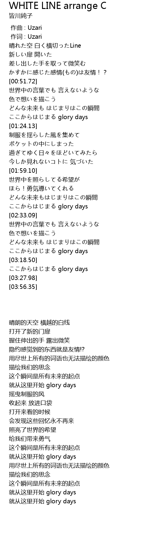 | [00:17.42] | 晴れた空 白く横切ったLine |