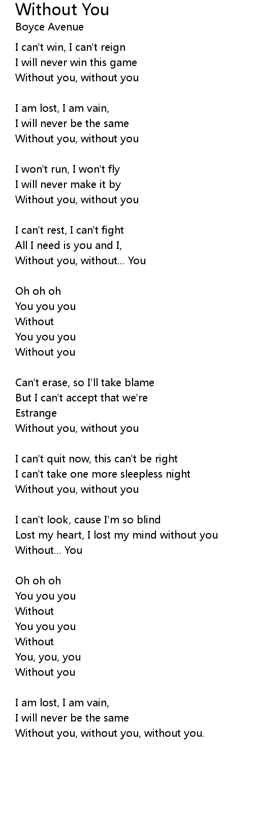 Without you, without you, without you. |