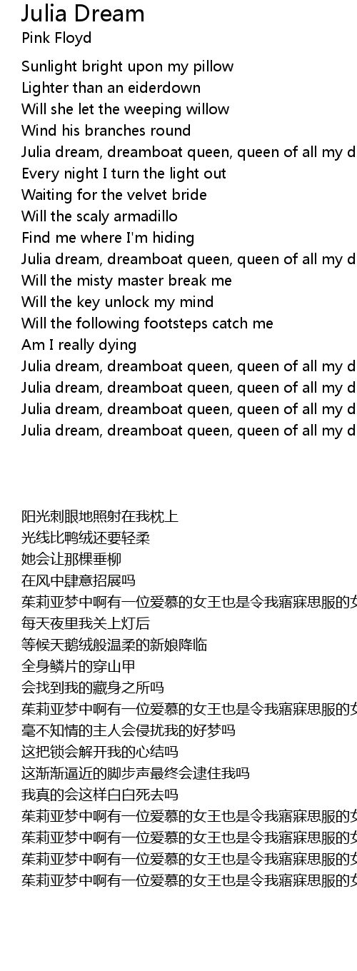 Julia dream, dreamboat queen, queen of all my dreams |