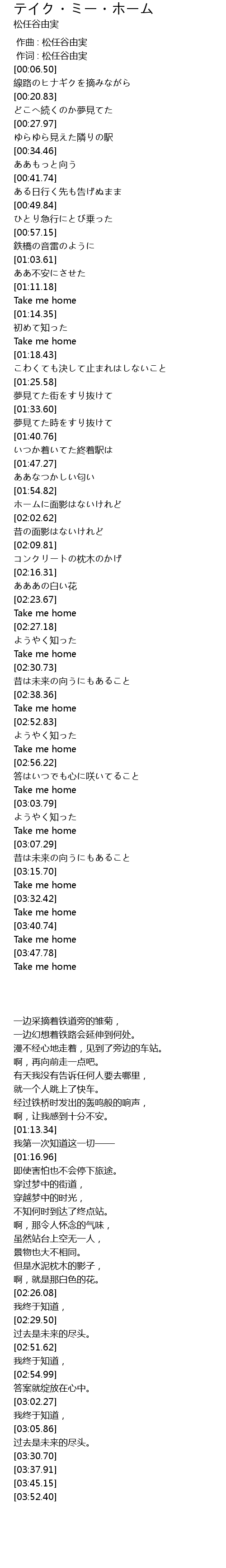 | [00:15.59] | 線路のヒナギクを摘みながら |