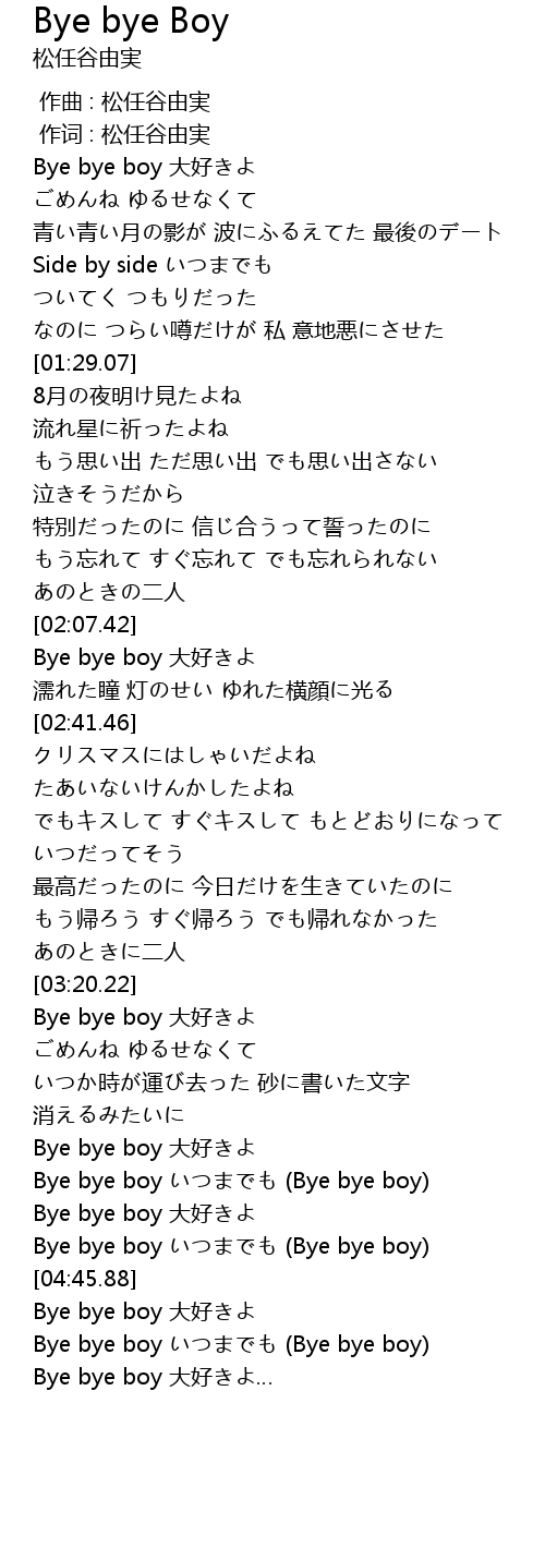 | [04:56.43] | Bye bye boy いつまでも (Bye bye boy) |