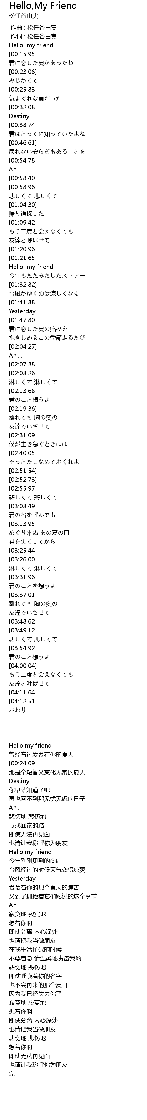| 歌曲 | Hello,My Friend |
