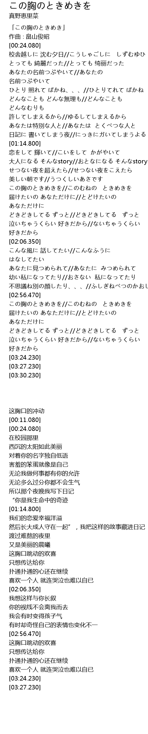 | [02:58.570] | この胸のときめきを//このむねの ときめきを |
