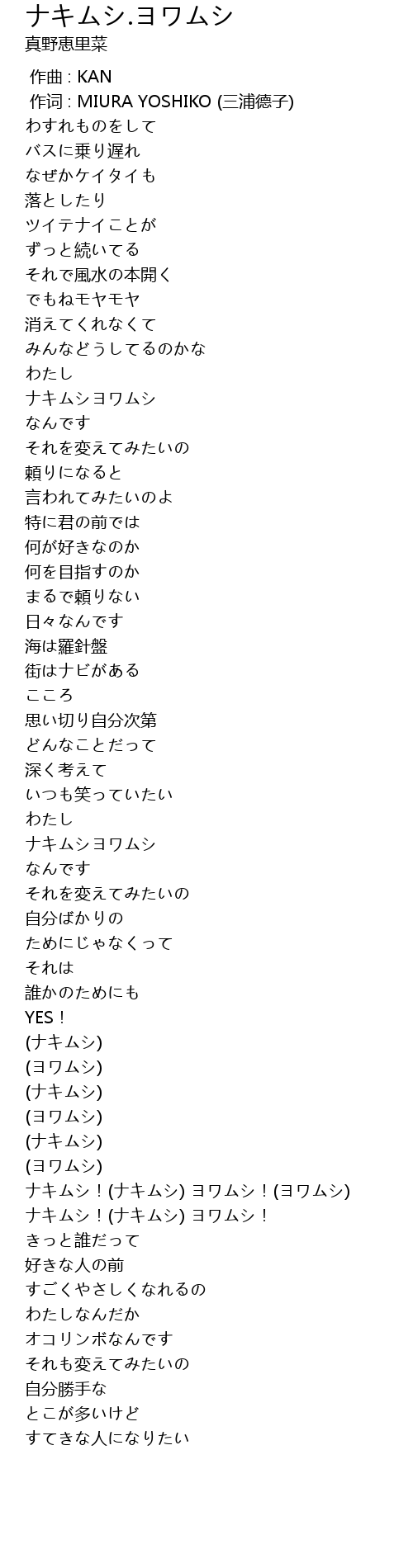 | [00:01.00] | 作词 : MIURA YOSHIKO (三浦德子) |