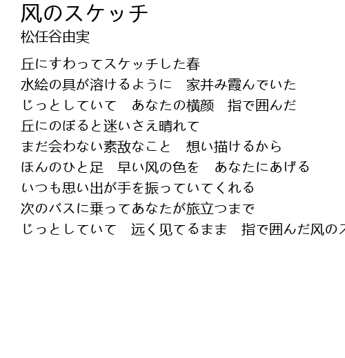 | じっとしていて 远く见てるまま 指で囲んだ风のスケッチ |