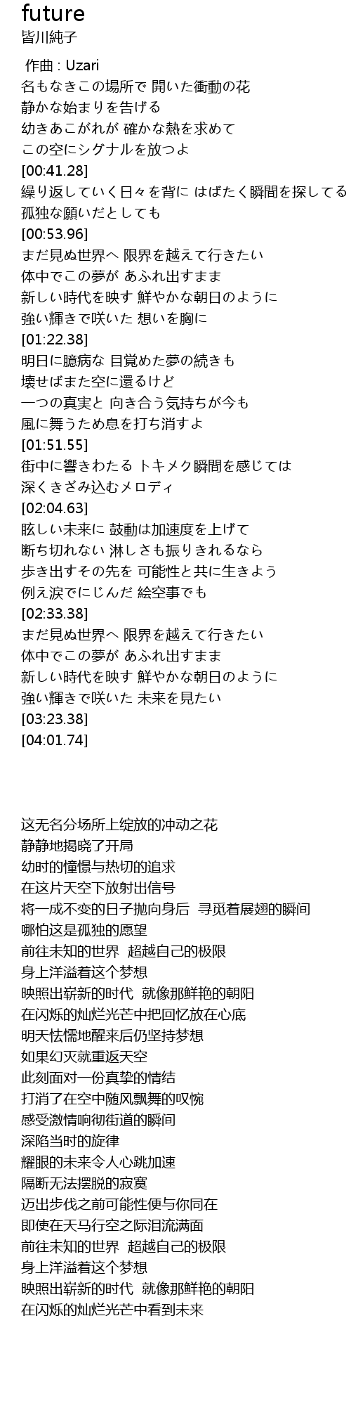 | [02:55.95] | まだ見ぬ世界へ 限界を越えて行きたい |