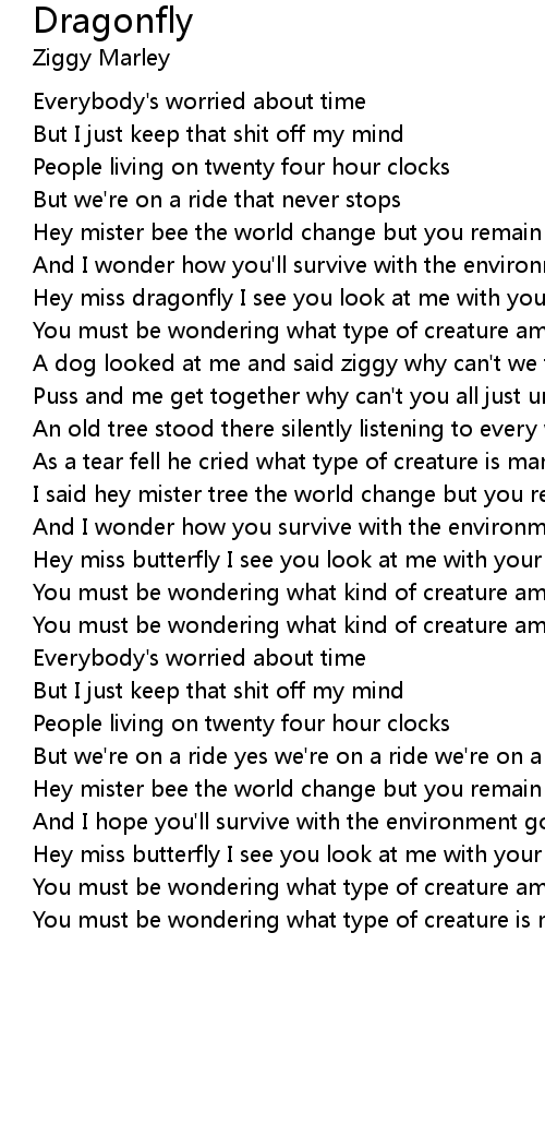 Hey miss dragonfly I see you look at me with your beautiful eyes |