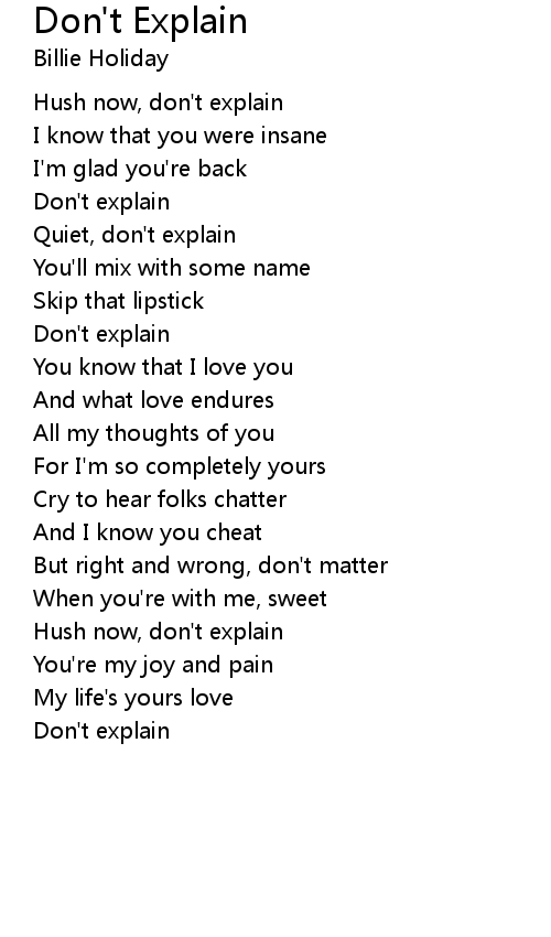 | Hush now, don't explain | |