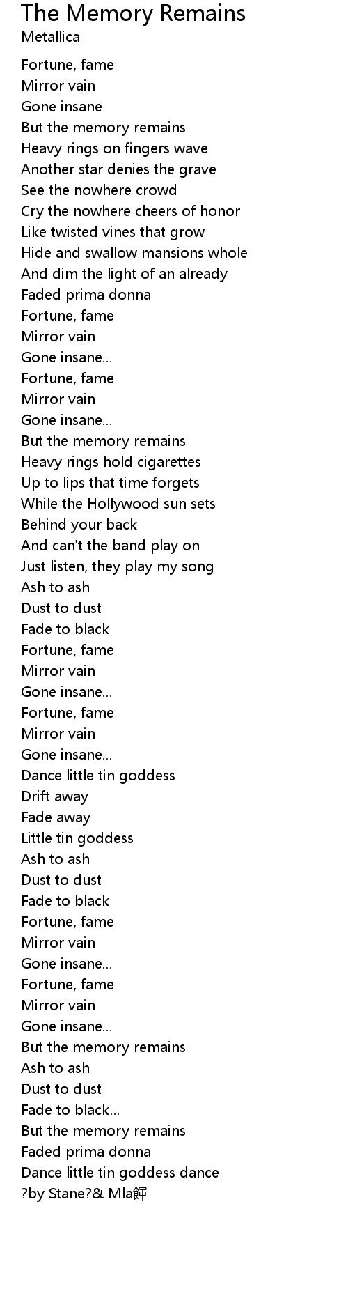 | 歌曲 | The Memory Remains |