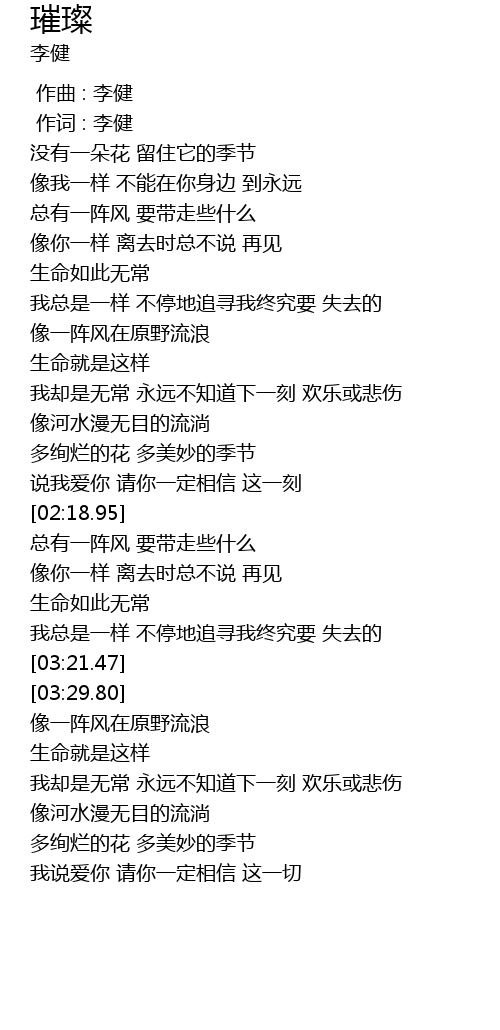 | [00:00.00] | zuò qǔ : lǐ jiàn |