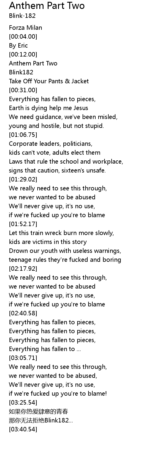 | [00:16.00] | Anthem Part Two |
