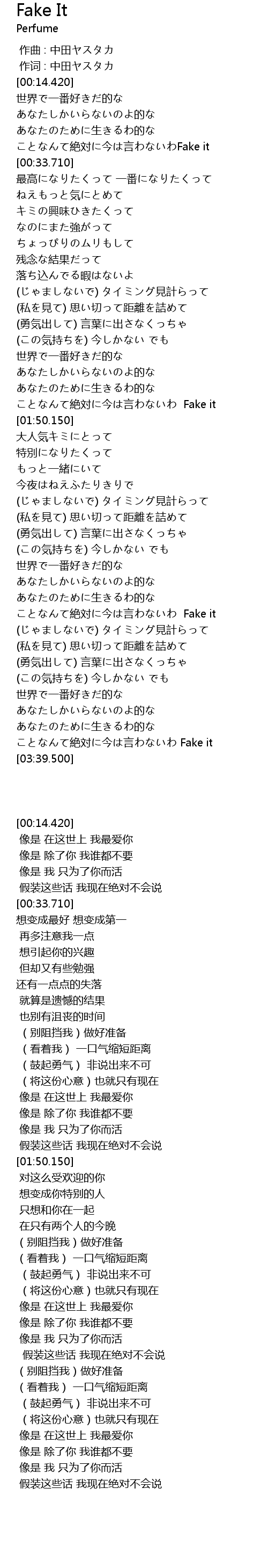 ことなんて絶対に今は言わないわ Fake it |
