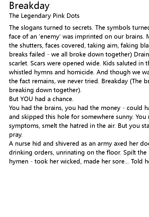 the fact remains, we never tried. Breakday (The breaks failed - |