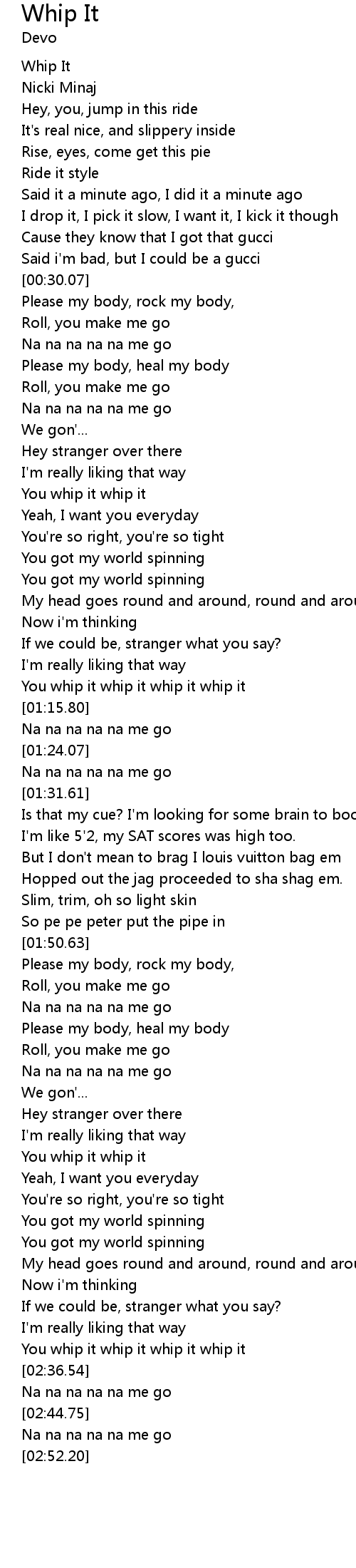 You whip it whip it whip it whip it |