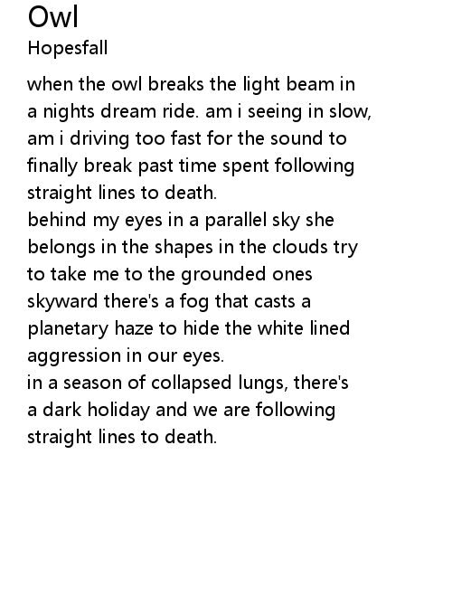 | when the owl breaks the light beam in | |