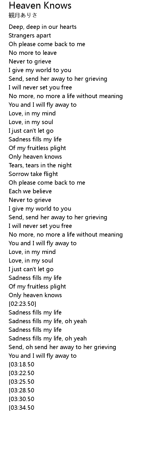 | [03:52.50][03:34.50] | Only heaven knows |