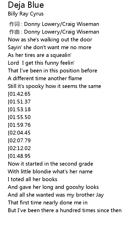 | [00:35.54][01:42.65][02:41.66] | Deja blue deja blue |