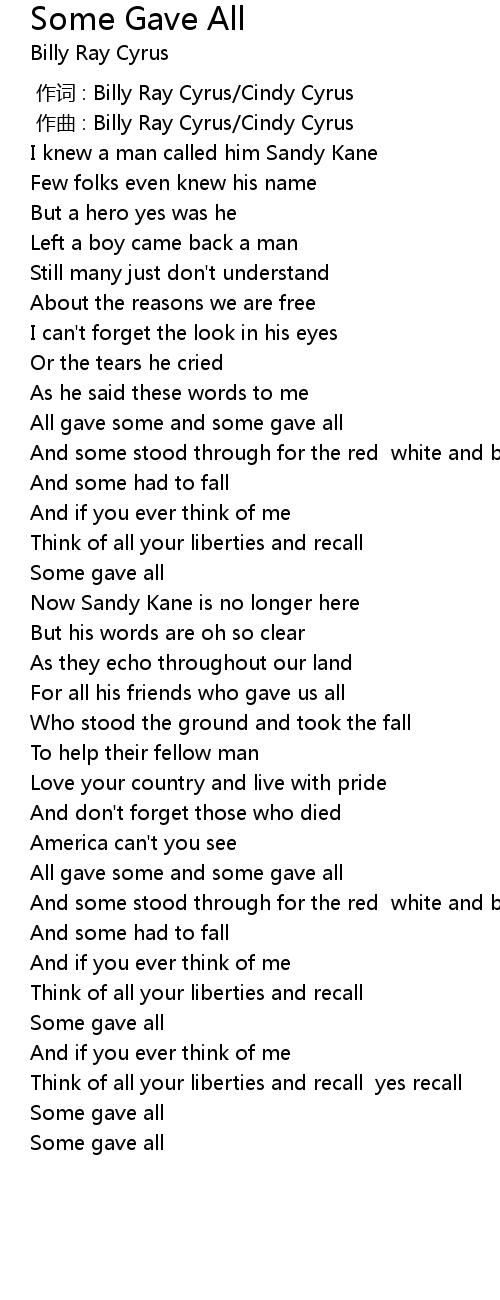 | 歌曲 | Some Gave All |
