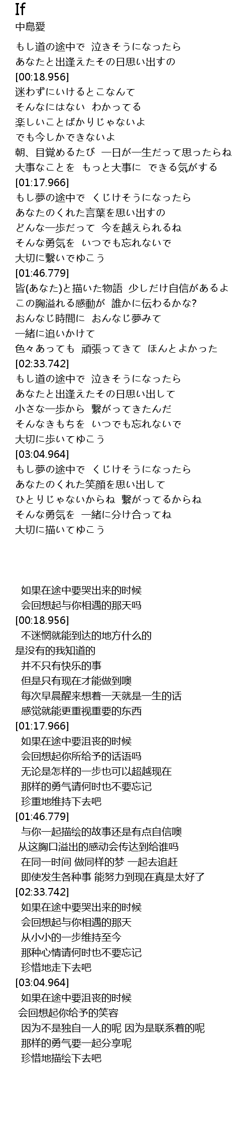 | [00:05.948] | もし道の途中で 泣きそうになったら |