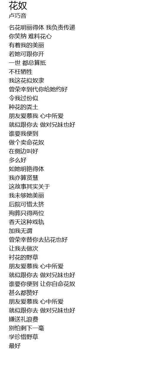 | [00:28.98] | 我这花似奴隶 |