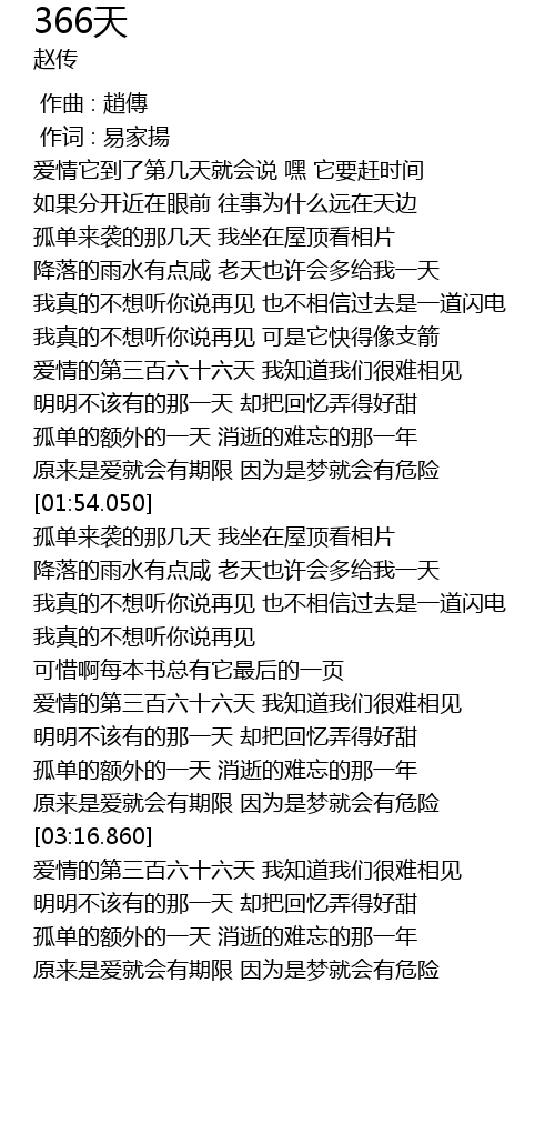 | [03:32.840] | 爱情的第三百六十六天 我知道我们很难相见 |