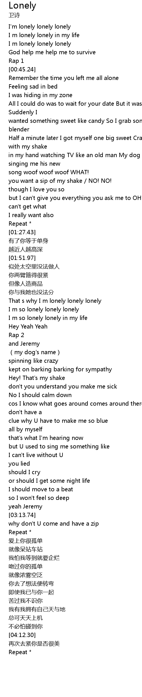 | [02:17.90] | I m so lonely lonely lonely |