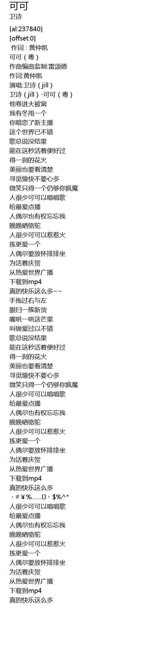 | [00:16.120] | 卫诗(jill)-可可(粤) |
