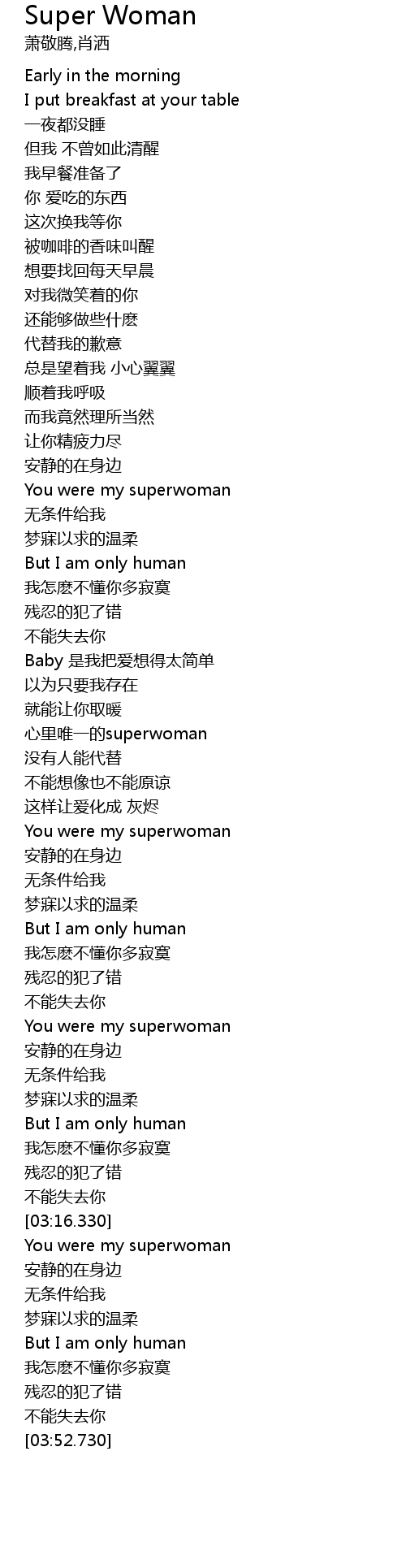 | [01:58.130] | 心里唯一的superwoman |