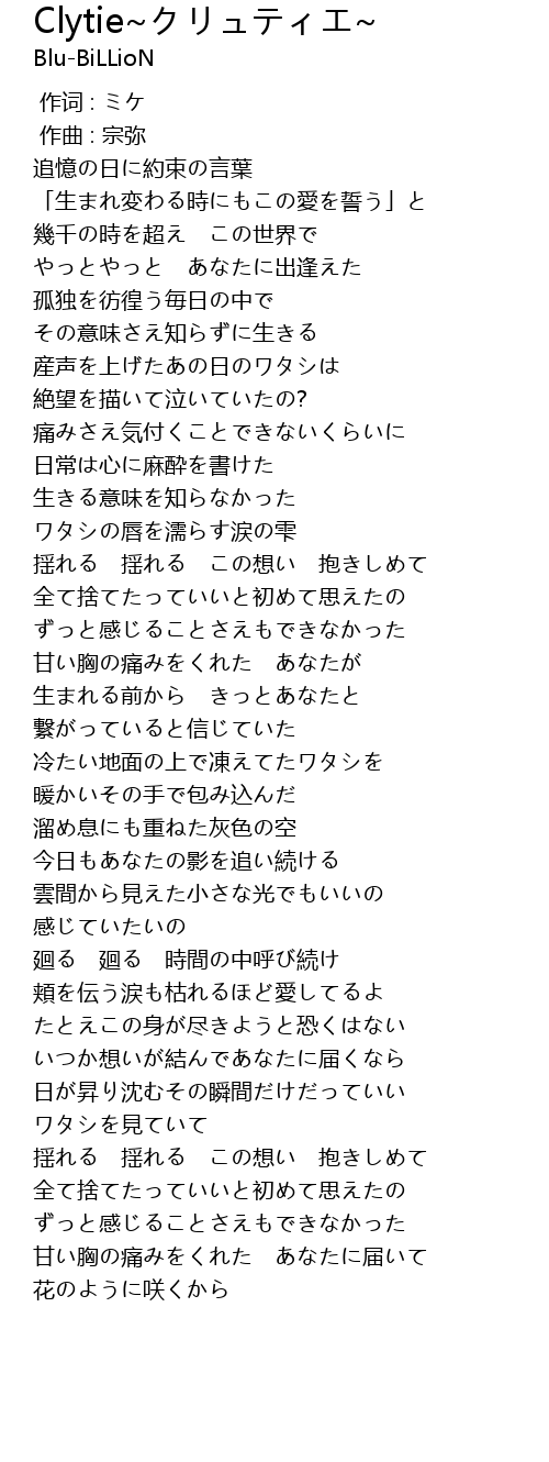 | [00:22.80] | 「生まれ変わる時にもこの愛を誓う」と |