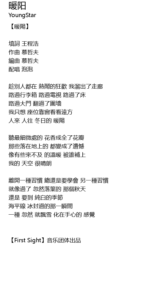 暖阳 歌词