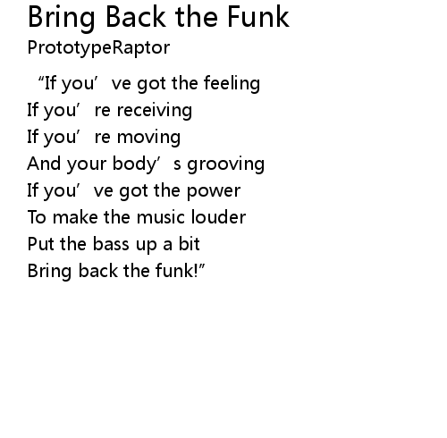 | Bring back the funk!" |