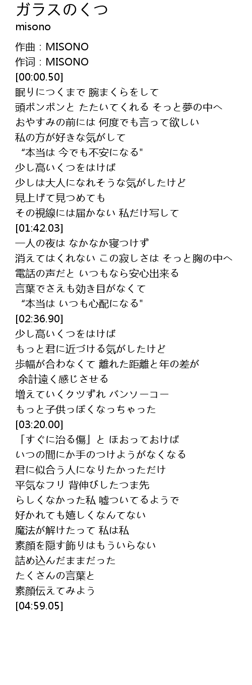 | [00:00.05] | 作词:MISONO |