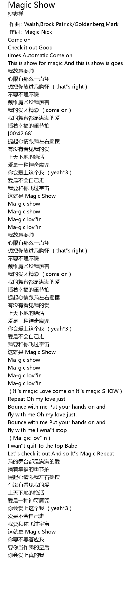 | [02:20.27] | It'' s magic Love come on It'' s magic SHOW |