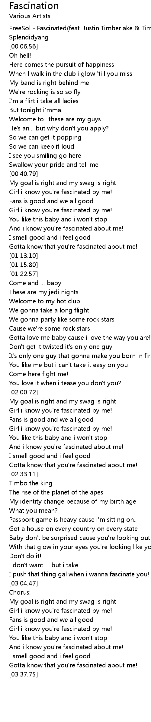 [00:02.88] FreeSol - Fascinated(feat. Justin Timberlake & Timbaland)