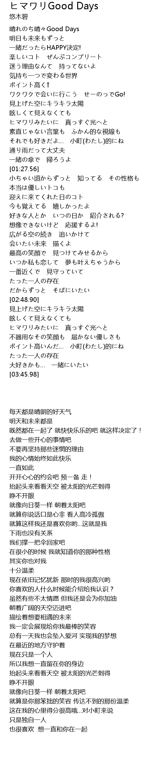 | [01:00.17] | ヒマワリみたいに 真っすぐ光へと |