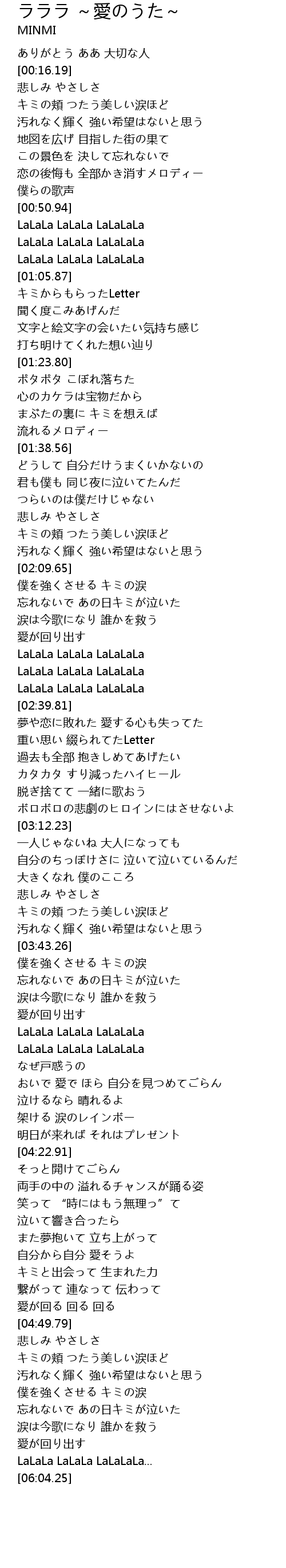 | [00:56.74] | LaLaLa LaLaLa LaLaLaLa |