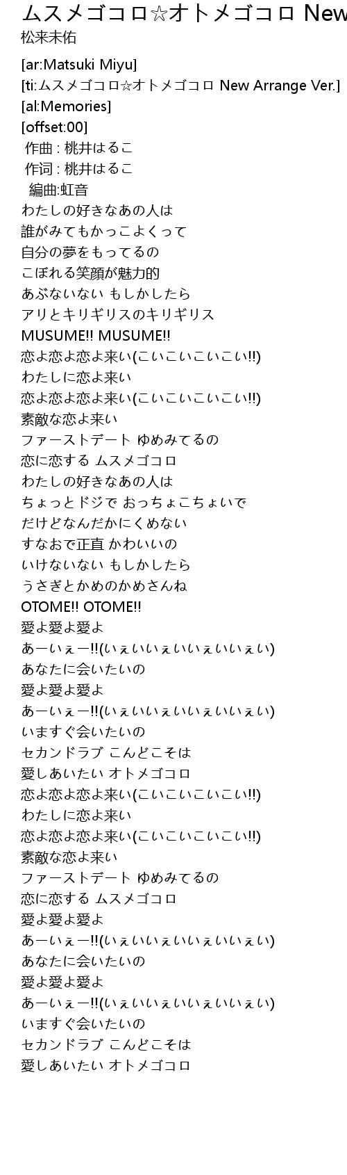 | [ti:ムスメゴコロ☆オトメゴコロ New Arrange Ver.] | |