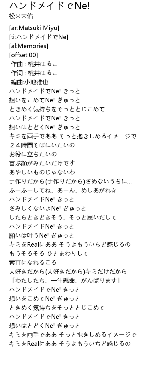 | [02:50.60] | ハンドメイドでNe! きっと |