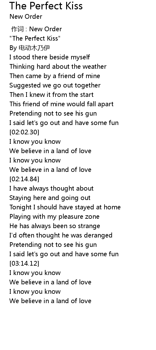 | [00:15.62] | "The Perfect Kiss" |