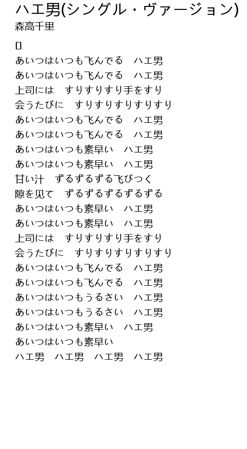 | 歌曲 | ハエ男(シングル・ヴァージョン) |