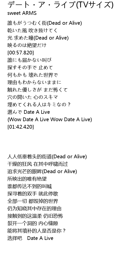 | [01:30.890] | (Wow Date A Live Wow Date A Live) |