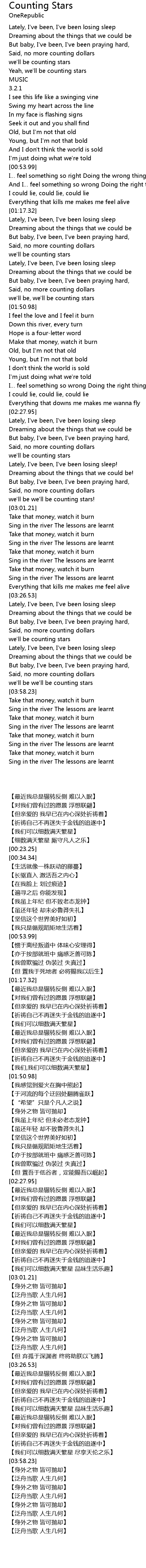 | [03:55.86] | we'll be we'll be counting stars |