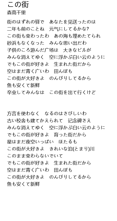 | この街も变わったわ あの海も埋めたてられ | |