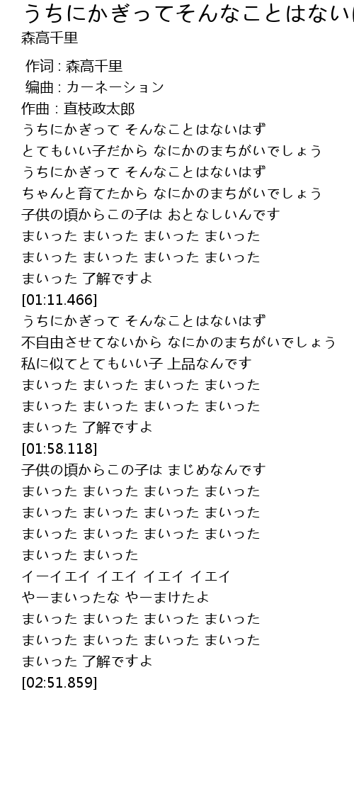 | [00:05.200] | うちにかぎって そんなことはないはず |