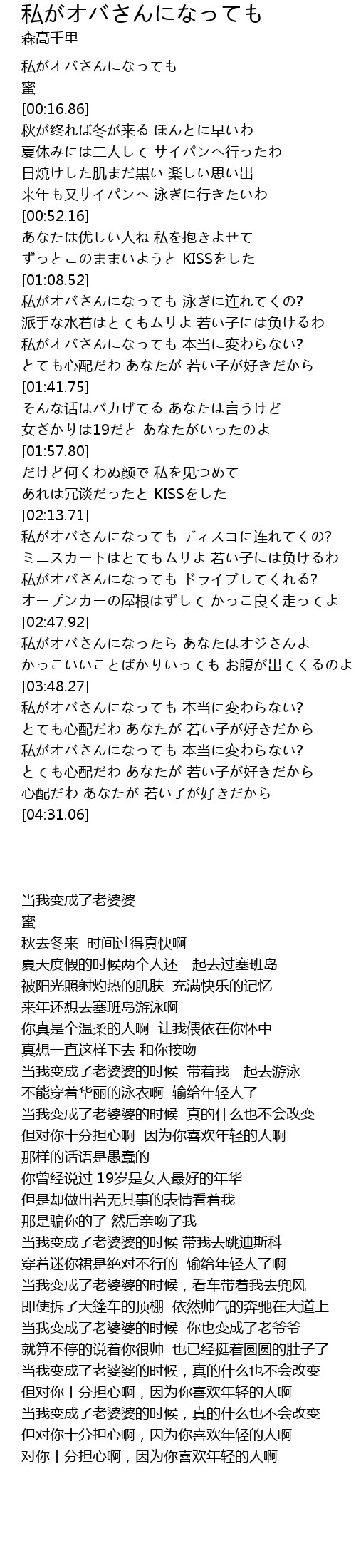 | [03:22.19] | 私がオバさんになったら あなたはオジさんよ |