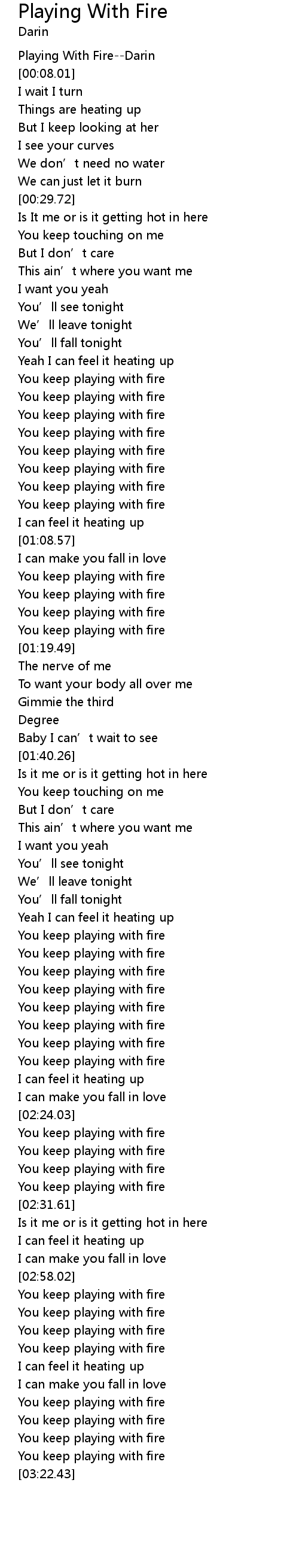 | [03:01.57] | You keep playing with fire |